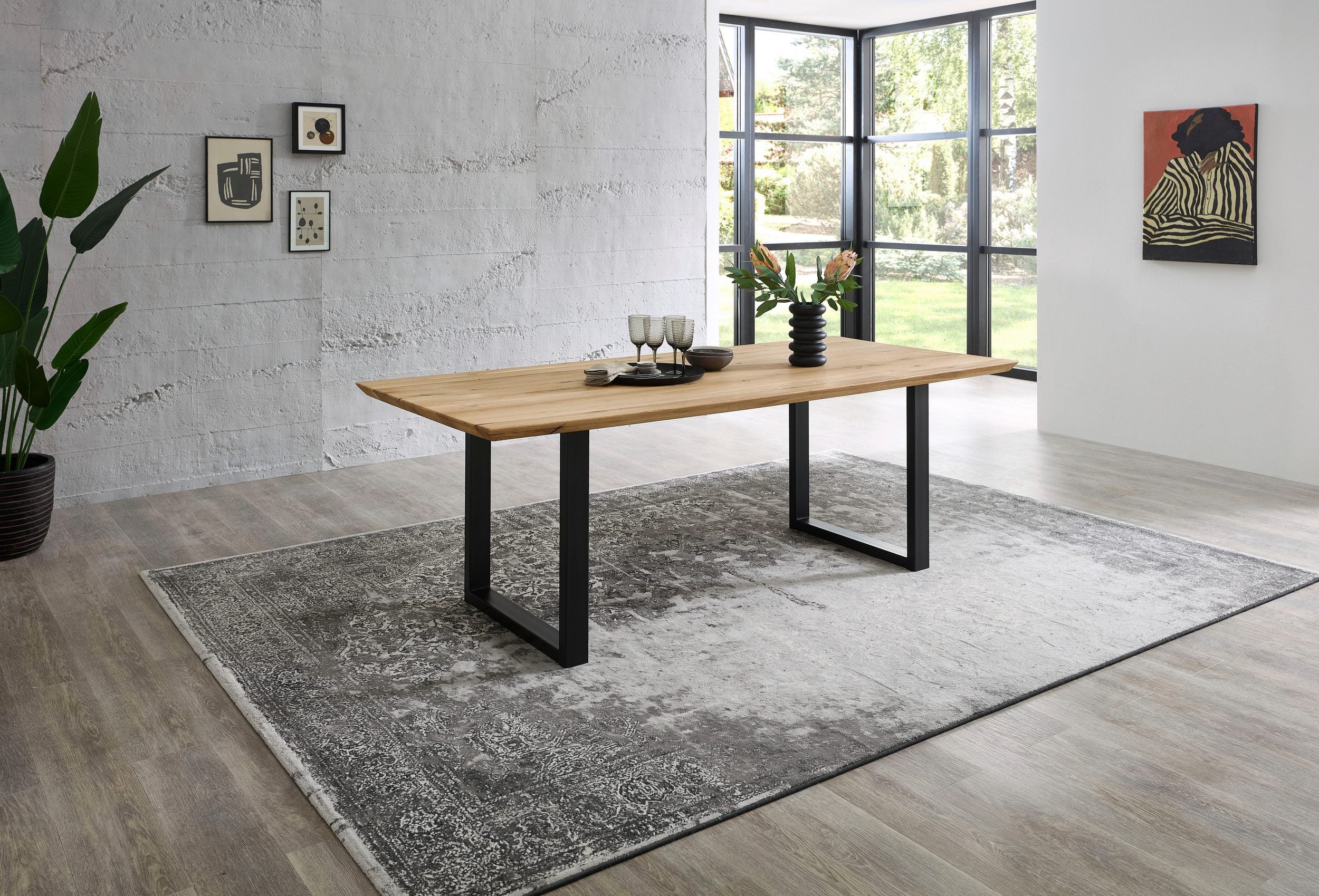 Blat masiv dublu, 40 mm grosime: realizat din stejar de cea mai bună calitate — robust, durabil și cu un aspect natural distinct.