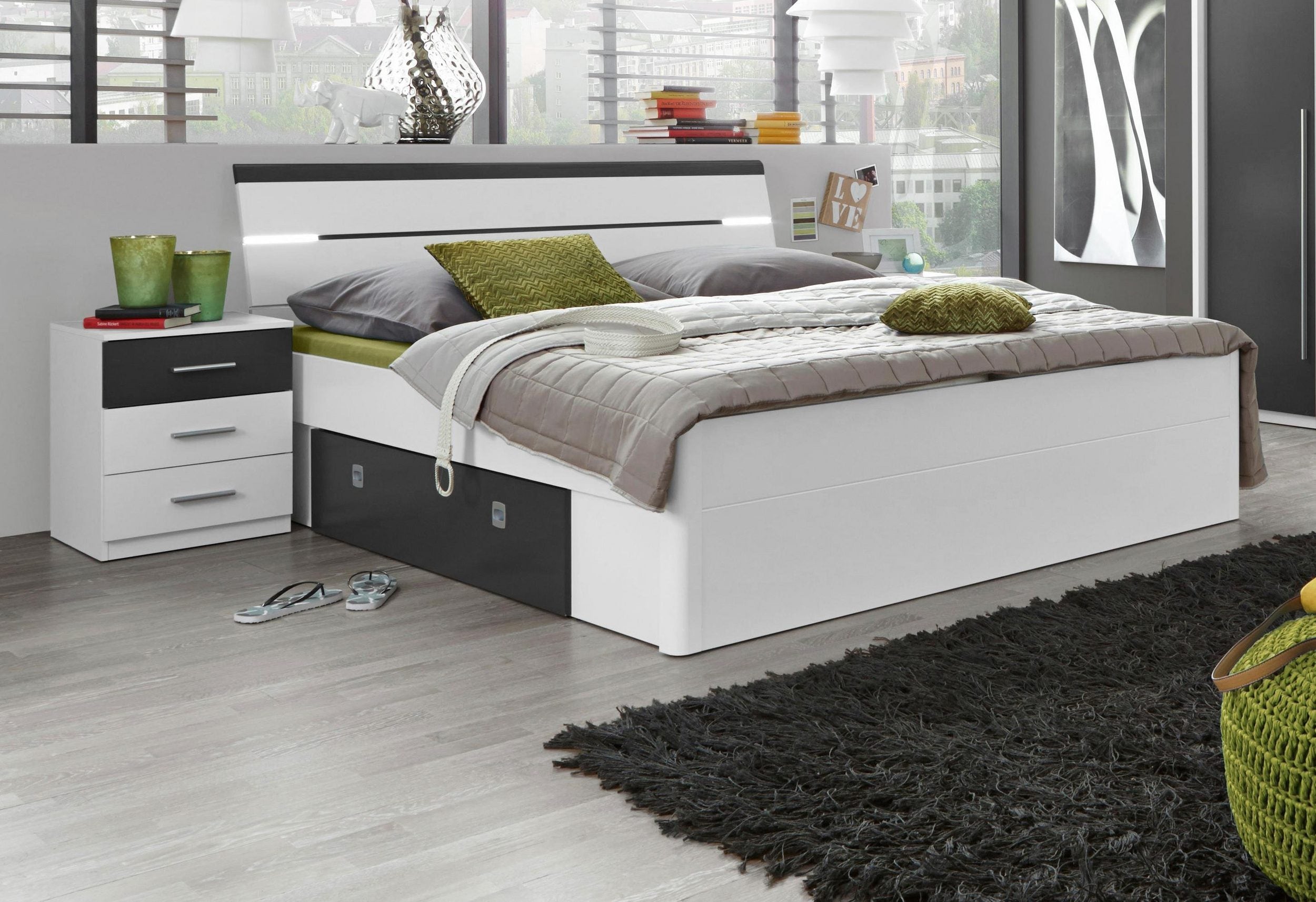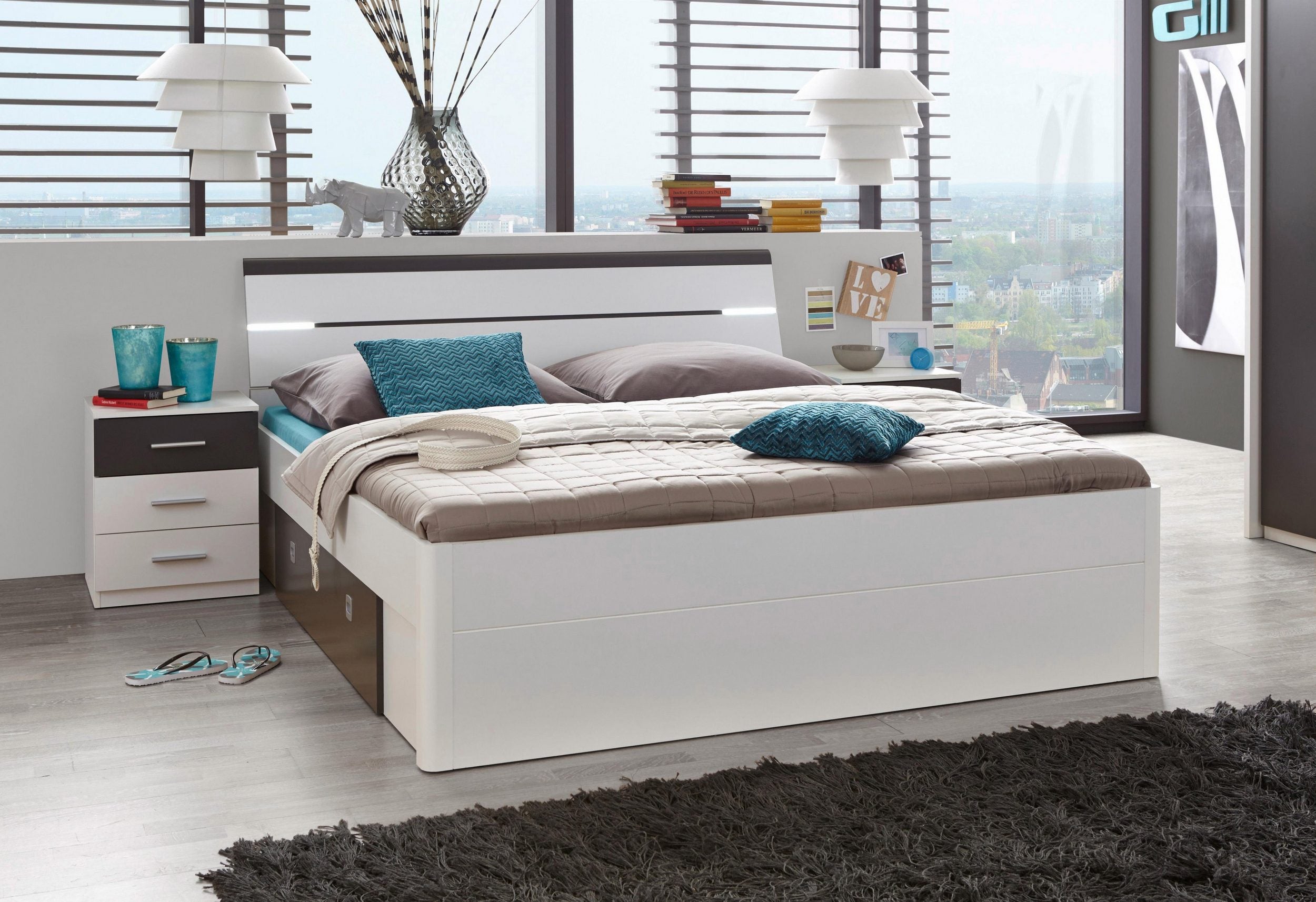 👉 Patul Mars de la Schlafkontor este soluția perfectă pentru cei care caută un pat confortabil, cu spațiu de depozitare și design modern, complet echipat cu noptiere și iluminare LED.