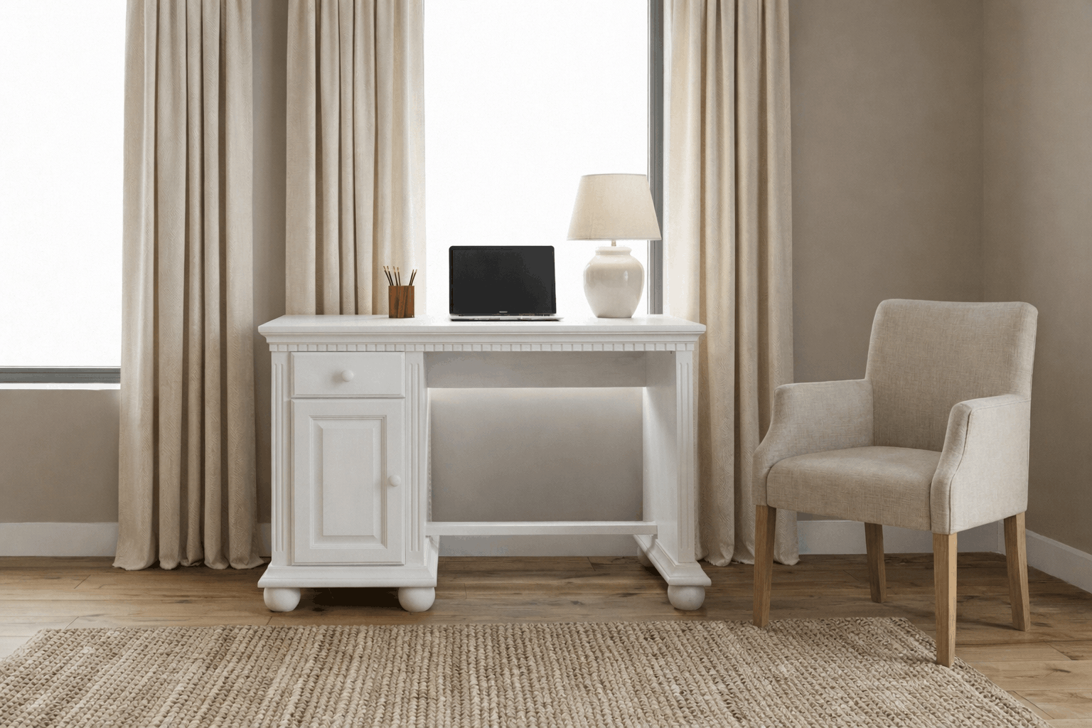 Birou Bavaria din lemn masiv, 120x75x75, Alb
