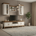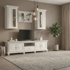 Compoziția echilibrată a pieselor permite organizarea eficientă a zonei TV și expunerea decorurilor, fiind potrivită atât pentru livinguri clasice, cât și pentru interioare contemporane cu accente naturale. Lemnul masiv de brad asigură durabilitate și stabilitate pe termen lung.