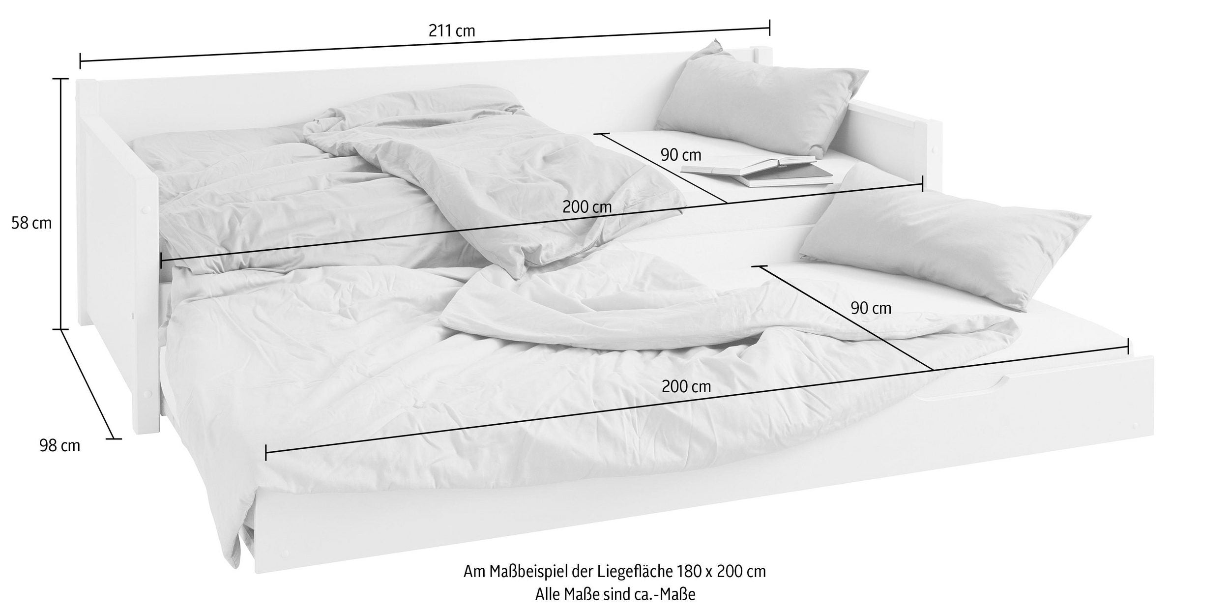 Include bază cu lamele; Înălțimea maximă a saltelei este de 13 cm pentru patul suplimentar ; Adâncimea nișei saltelei este de 12 cm; Distanța dintre lamele bazei cu lamele este de 6 cm