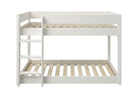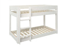 Construit din lemn masiv de pin certificat FSC®, patul are un design scandinav simplu și luminos, finisat în alb, care se potrivește perfect în orice cameră de copil. Suprafața de dormit inferioară este aproape de nivelul podelei – ideală pentru cei mici, iar zona superioară este prevăzută cu balustradă de protecție pe tot perimetrul, pentru a preveni căderile.