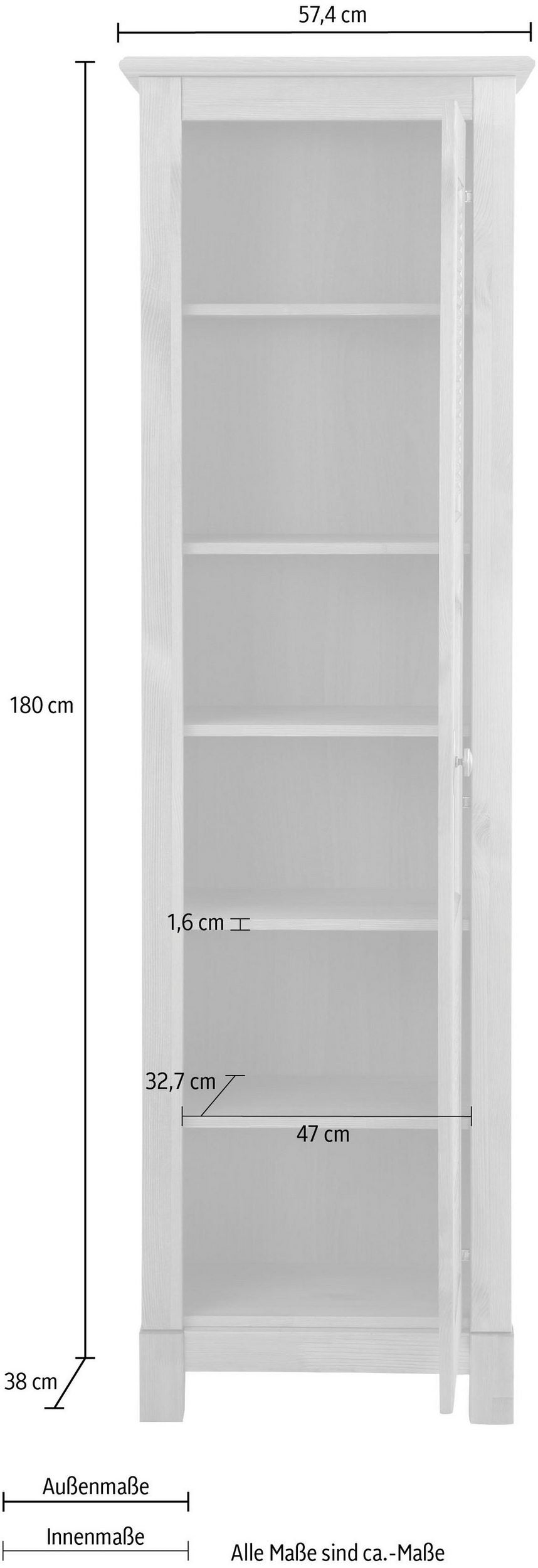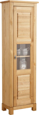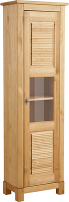Vitrină Rauna – lemn masiv pin FSC®, ușă cu sticlă și freze decorative, stil rustic – 57x38x180 cm