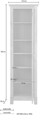 Eleganță rustică și funcționalitate într-o singură piesă. Vitrina Rauna de la Home Affaire este realizată din lemn masiv de pin certificat FSC®, un material natural ce garantează durabilitate și un aspect autentic. Cu dimensiuni de 57,4 × 38 × 180 cm, vitrina este compactă, dar oferă suficient spațiu pentru depozitare și expunere.